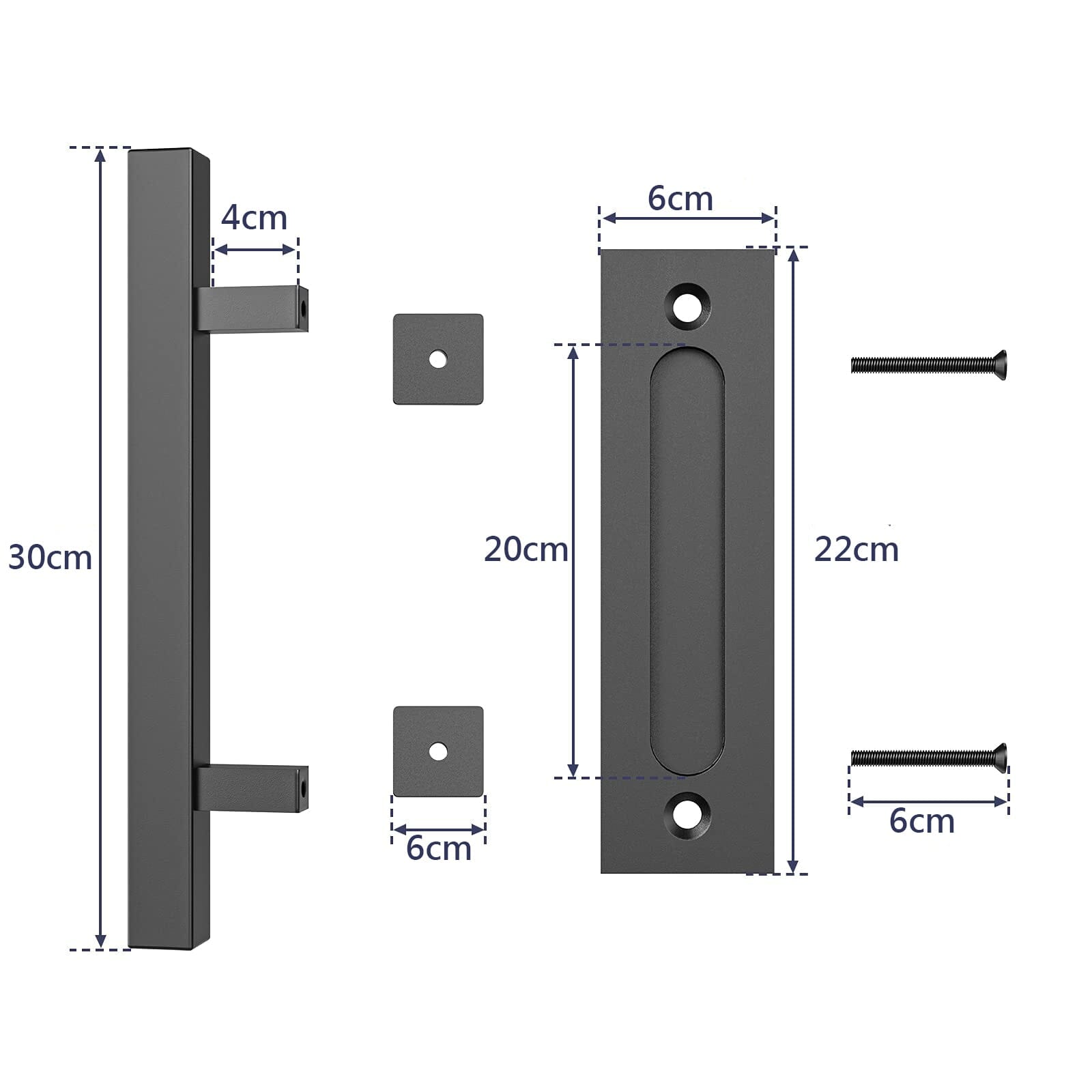 Fits barn doors ranging from 3.5cm to 4.5cm thick (if you want to use for a thicker door panel, you can buy some longer screw to match the door.)
