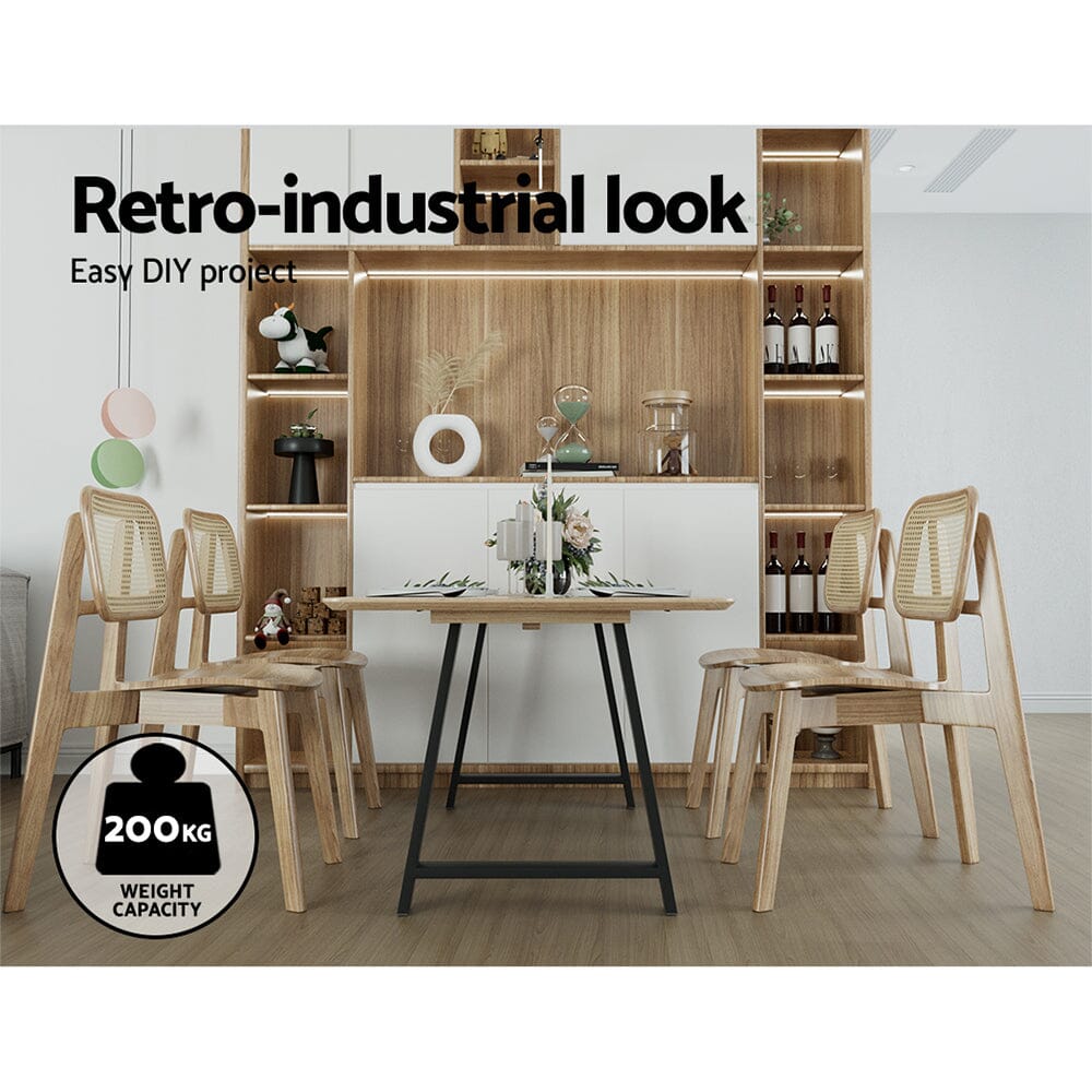 Give your existing furniture a tasteful twist with our Artiss metal table legs. Featuring beautiful trapezoid shape design, our industrial-style metal table legs will help you achieve a gorgeous retro classic look. It's designed to suit various furniture styles and can be used for benches, coffee tables, desks, and kitchen dining tables. The metal table legs come fully welded with 70mm wide tubes for ultimate support and stability. It boasts solid premium iron construction with black matt powder-coated and rust-resistant finish for durability. Its sturdy design and solid construction ensure that it will withstand many years of use. This commercial grade metal table legs also come with six pre-drilled holes that allows hassle-free installation, and the bonus feet pads prevents the floors from getting scratches and keeps them looking pristine. Shop these ultra-durable and sturdy metal table legs to enhance the stability and durability of the furniture and elevate your home's interior.