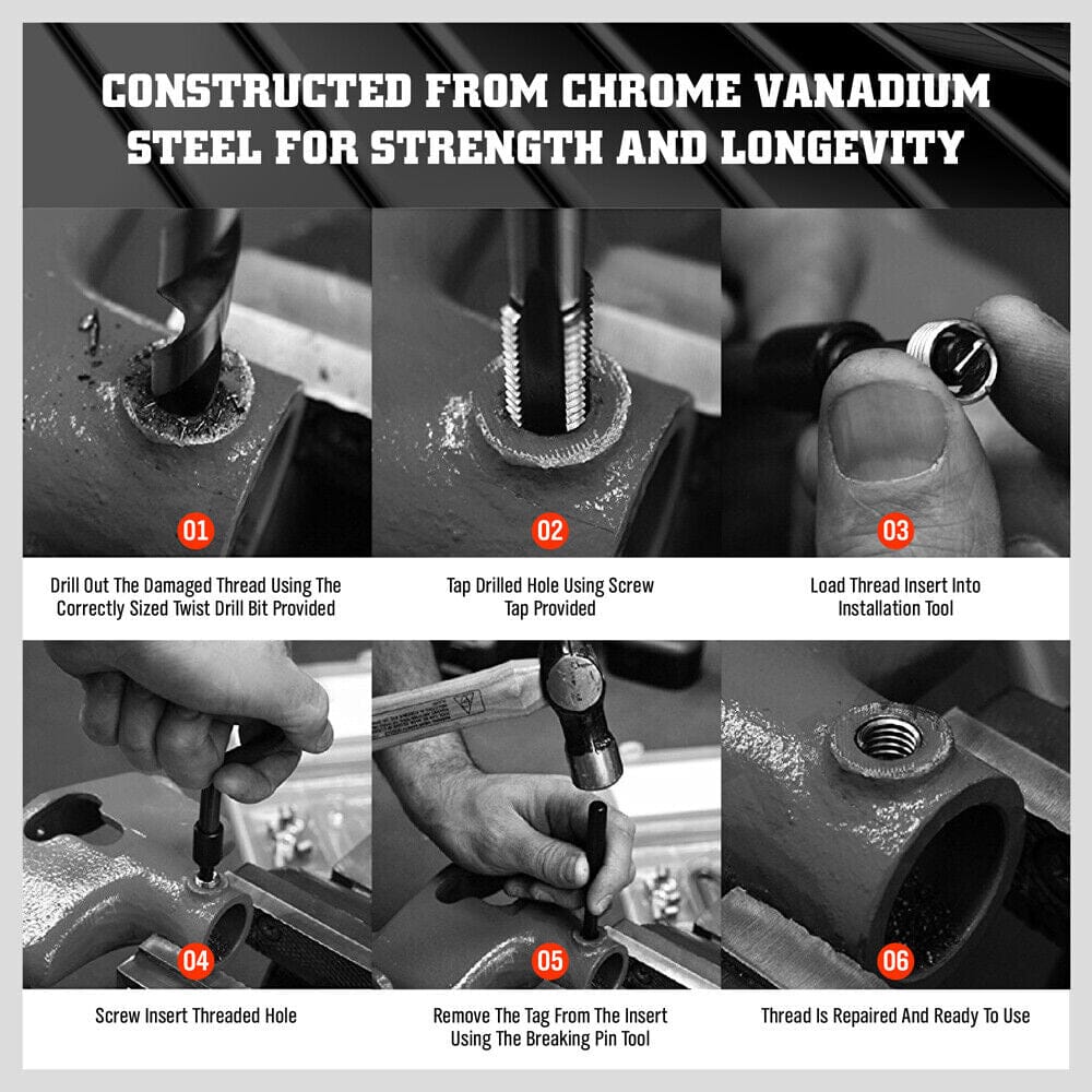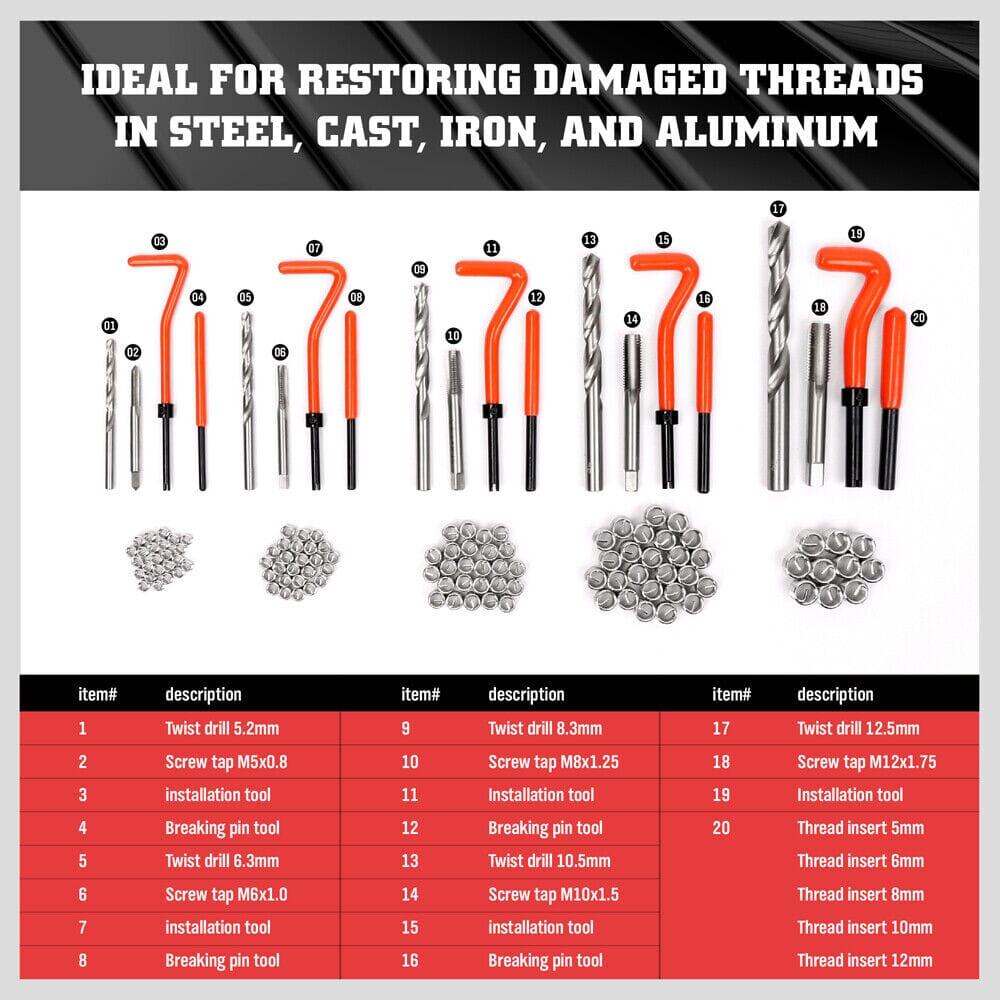 131pcs Helicoil Thread Repair Tool Rethread Repair Kit Metric M5 M6 M8 M10 M12