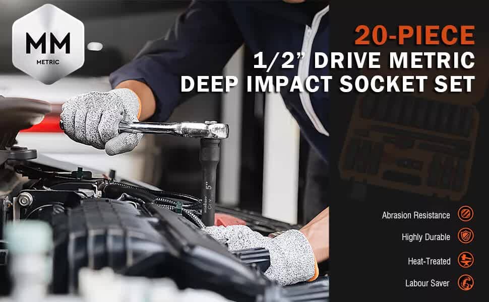 19Pc Deep Socket Set Impact 1/2" Drive Extension Bars Flexible Adapter 10-24mm Auto Accessories Kings Warehouse SALE