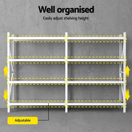 Maximise your storage potential with the Giantz Storage Racks, engineered to support heavy-duty demands. Each shelf level boasts a 200kg capacity, perfect for tools, equipment, and household essentials. Constructed from industrial-grade steel with a rust-resistant coated finish, these racks are built to last. The Z-bracing and reinforced frame enhance strength and stability, while adjustable shelf height settings ensure flexibility for storing items of various sizes. Designed for convenience, the rack comes with 32 safety plugs for added security. Whether for your garage, workshop, or shed, the Giantz Storage Racks provide an efficient storage solution.