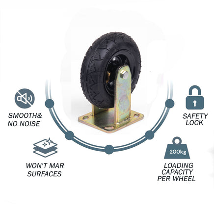 Keeps that ride smooth. Perfect replacement for tired trailer wheels (non-highway) Heavy duty large commercial grade equipment products. Down at the harbor? These wheels will roll in sand at the beach. On the farm? These casters are perfect for heavy-duty hauling of dirt, yardworks or any rolling flatbed dolly freight moving needs.