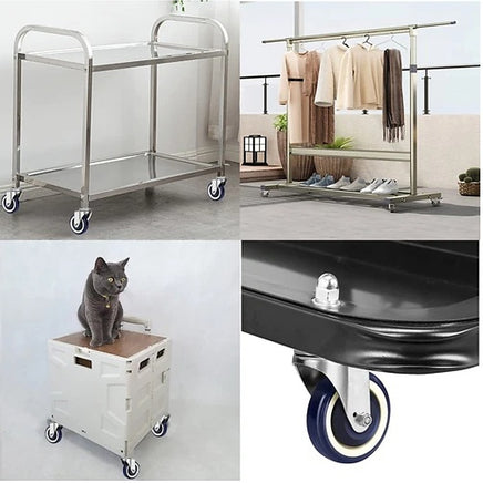 - Versatile Multi-Purpose - Compatible with most shopping carts, utility carts, dollies, grocery carts, trolleys, and laundry carts, these non-marking wheels glide smoothly across all floor types while eliminating the annoying noise of traditional cart wheels.