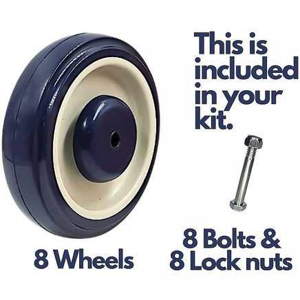 - Perfect Fit Easy Installation - Each 5-inch diameter, 1.25-inch wide wheel features industrial-grade ball bearings for effortless movement. The set includes 8 bolts and nuts for a hassle-free installation, and the thicker axle design ensures enhanced stability and durability.