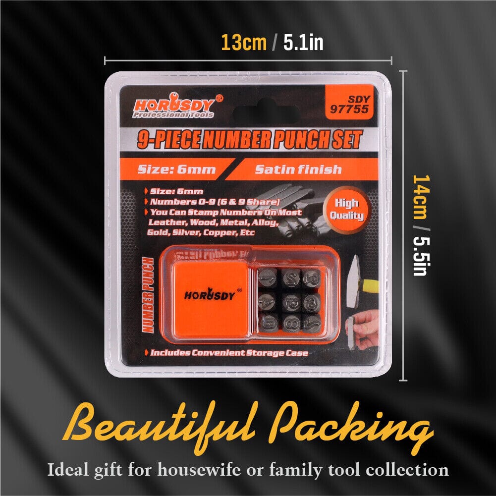 - Set includes 9 number punches (0 - 8) - use the 6 as a 9