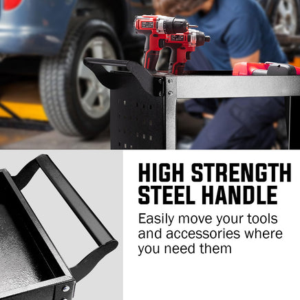 Bullet 3-Tier Steel Tool Trolley Cart, for Workshop, Mechanic, with Pegboard, Screwdriver Bay, Black SALE