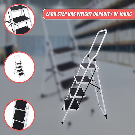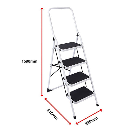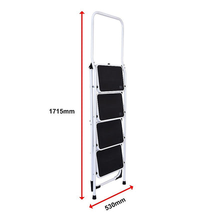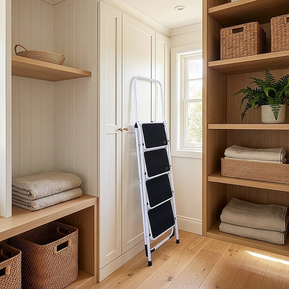 Safety features of this four-step ladder include non-slip steps with rubber surfaces and dual handrails. The step-ladder is foldable and lightweight and can be easily stowed away in a handy spot for quick access. You'll be surprised how often you'll need to use this great step-ladder for household chores.