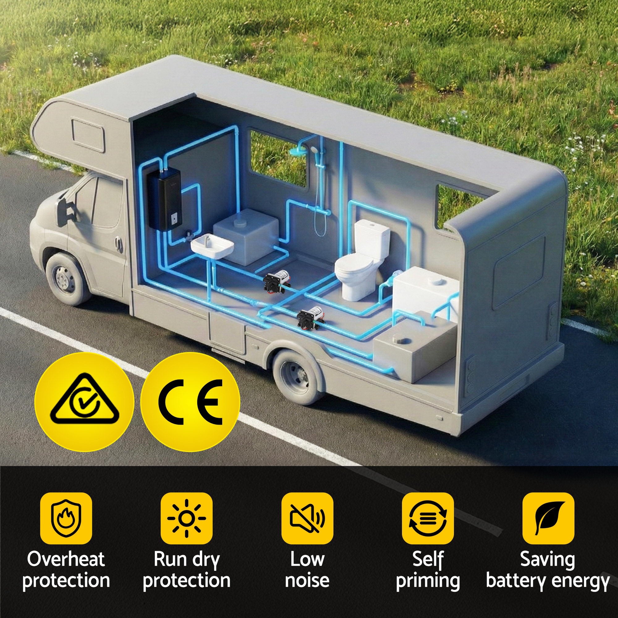 Designed for Your Yacht, Garden, and Home Whether you're detailing your car, watering the garden, or maintaining a yacht, the Giantz pump's compact and quiet design makes it the perfect fit. This reliable 12Volt DC fresh water pump is a direct replacement for standard RV water pumps, ensuring your next outdoor adventure is as comfortable as being at home.