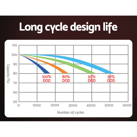 Maximum cycle life: 5000 cycles (@30% DOD)