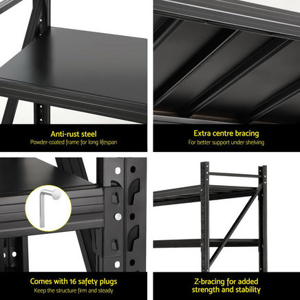 Simplify your storage needs with the robust GIANTZ Storage Rack. Designed to handle up to 200kg per shelf, this industrial-strength rack is perfect for organising heavy tools, equipment, or bulk items in your garage, workshop, or storage space. Its Z-bracing provides enhanced stability, while the reinforced steel frame ensures long-lasting durability. The rust-resistant coated finish protects the rack from wear and tear, maintaining its quality over time.