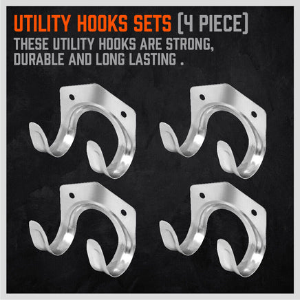 19-PIECES INCLUDING- 15Pcs SPRING GRIPS 4Pcs U-UTILITY HOOKS 20 mounting screws. The installation is very easy and convenient, give your spades, brooms, mops, hammers, rakes, baseball bats and other items a good place to belong.