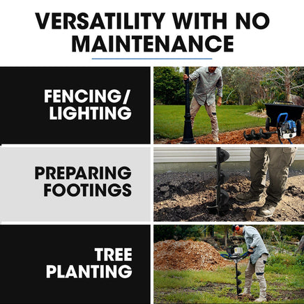 Introducing the PowerBlade PD750 2 Stroke 52cc Petrol Post Hole Digger - built to handle even the toughest digging tasks. With its high torque and easy-start 52cc engine, the PD750 delivers maximum power and efficiency. The anti-vibration vertical alignment ensures comfort and precision during operation, making it a breeze to use.