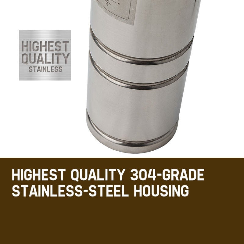 Only requiring a borehole of 100mm, the Protege minimises the work needed to reach the water. And once you get there, you're set. Manufactured from 304-grade stainless steel and brass, your Protege is a durable workhorse that will keep you in flow for years to come. So order the Protege and increase your liquid assets today!