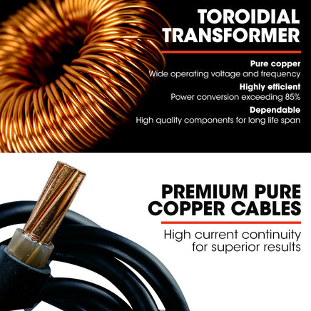 With an efficient pure copper Toroidal Transformer and output current that is adjustable between 20A and 140A, you can achieve a quality weld on a wide range of base metals; steel, stainless steel, cast iron, copper, brass, and other highly conductive metals. The high-quality transistors in the bridge combine to make a continuous current rectifier, giving high speed and precise regulation and continuity of the welding current to produce superior results with the onboard adjustable wire feed, general stick, electrode, and special-purpose rods. It is compatible with solid or flux core materials depending on welding with or without gas.
