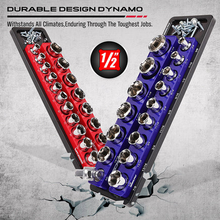 MAGNETIC GRIP- Ensure your 1/2-inch sockets remain securely in place, whether in a drawer, toolbox, or mounted on a tool cart with our magnetic socket organizer set.