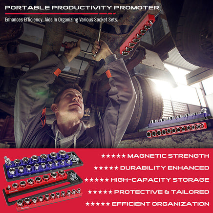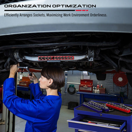 DEDICATED FIT- Tailor-made for standard 1/2-inch SAE and metric sockets, our organizer ensures a tidy and orderly work environment, enhancing your productivity.