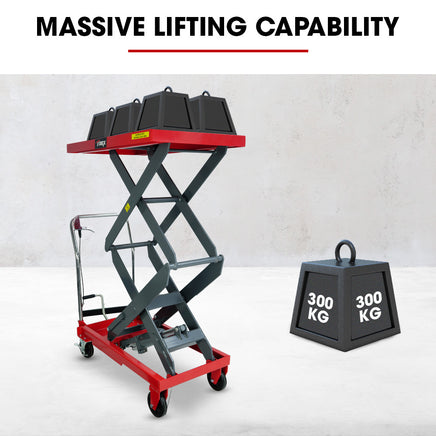 The T-Rex 300kg High-Lift Material Handling Cart is designed to maximise the way you handle stock and material. Engineered with precision and safety in mind, this hydraulic double scissor lift trolley is perfect for anywhere you need to move and lift heavy loads a wide range of heights safely and efficiently.