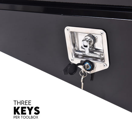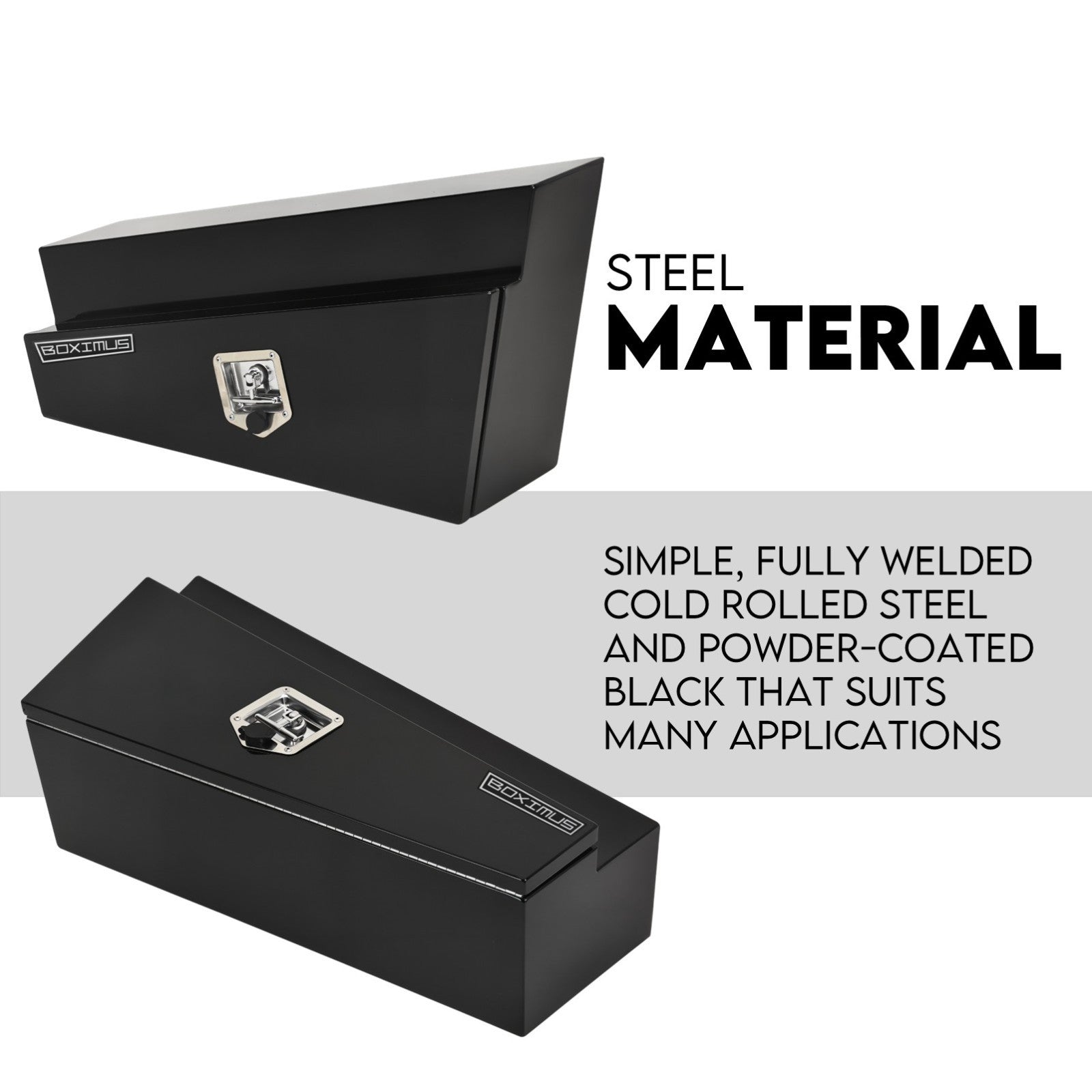 When you’re on the job, you need gear that’s built to handle the rough stuff. The Boximus 900mm Black Steel Under Tray Tool Box delivers just that — rock-solid storage that keeps your gear dry, secure, and right where you need it. Built from heavy-duty steel and finished with a tough black powder coat, it’s made to resist rust, water, and dust — no matter how hard the worksite hits. Dual support cables keep the lid steady, while the rubber seal locks out the elements. This 900mm pair set fits neatly under most ute trays, saving space without cutting corners on protection or strength.