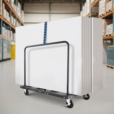 This drywall dolly cart supports up to 1800 lbs. The wide base holds drywall, plywood, stone, or glass with ease, boosting efficiency and saving energy