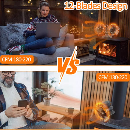 [Wide Application] The heat powered fan works with gas/ pellet/ wood/ log/ burner stove, which can effectively improve the circulation of warm air. It is an essential warm winter artifact for household.
