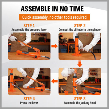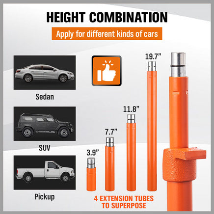 Perfect for All Your Needs: The portable hydraulic ram kit includes everything you need to complete your repair work! Hydraulic pump, hydraulic ram, 4pcs extension tubes, serrated saddle, rubber head, V-shaped head, wedge head, connector, flat base, hydraulic spreader, spreader ram toe, plunger toe. You will be ready to take on any project without breaking a sweat.