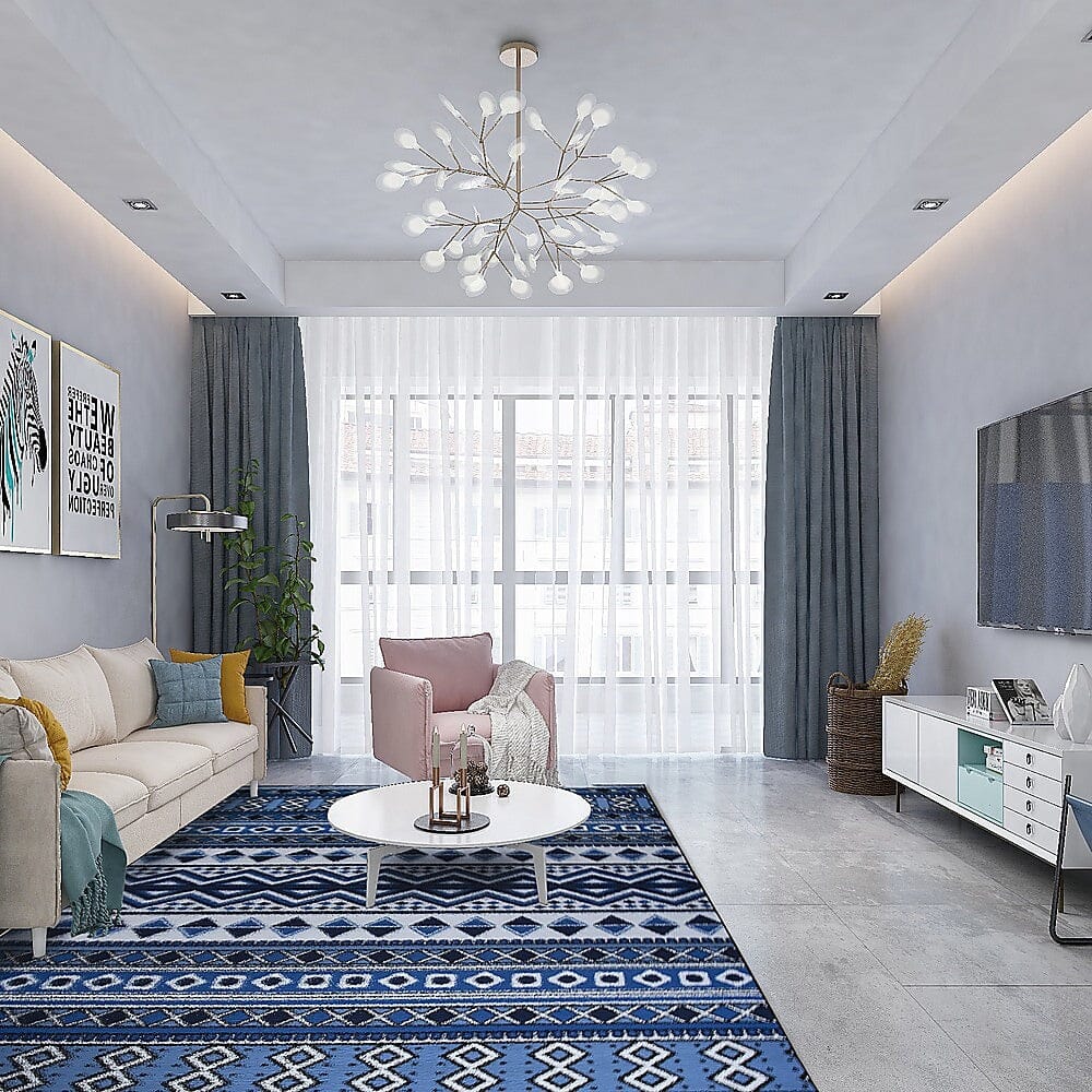 Large 200x300cm Blue Ethnic Rug – Durable Floor Carpet Mat for Bedroom, Living Room or Office Space x 1