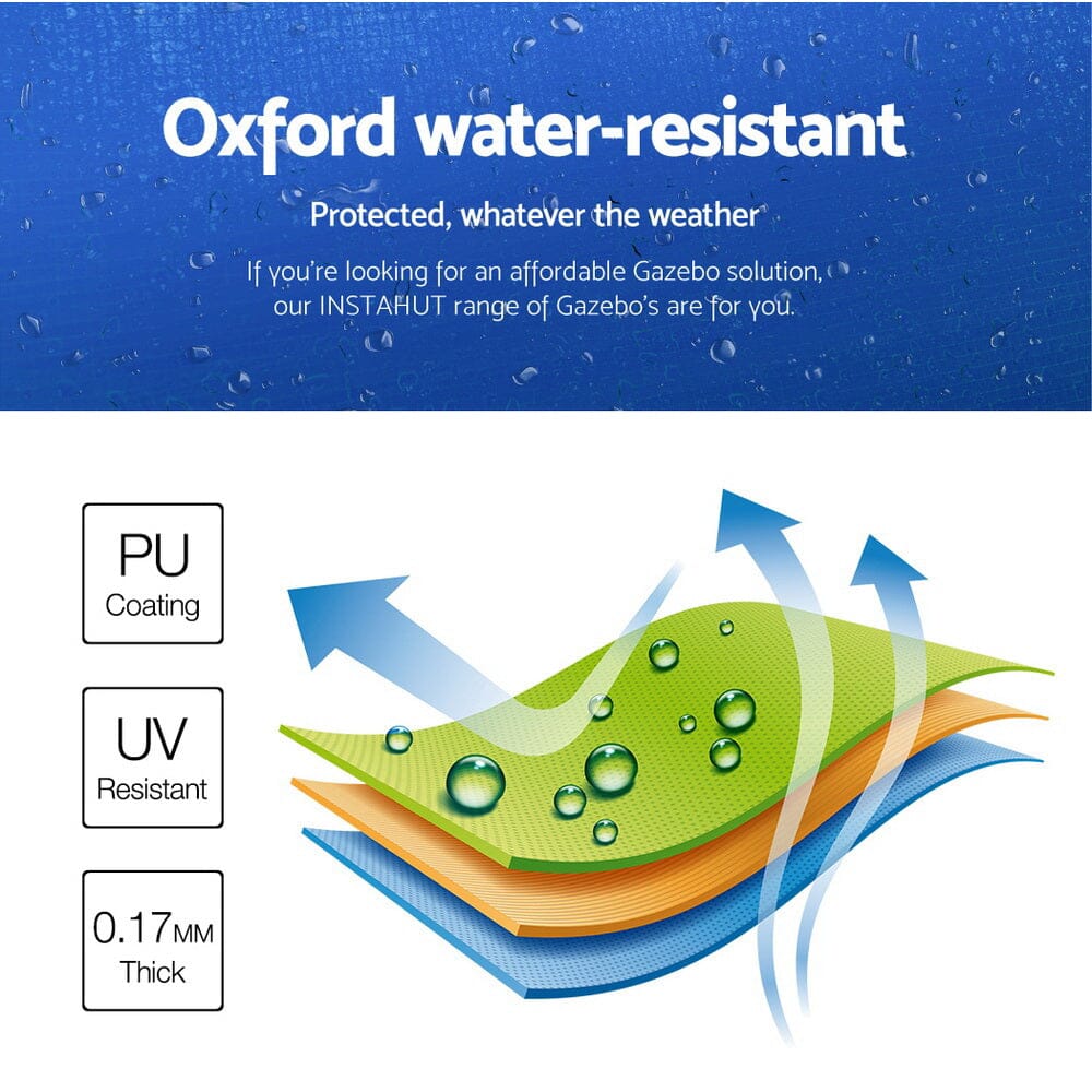 With a wide roof coverage of 300cm by 600cm, the exceptional 6kg cover is made of durable PU coating Oxford fabric thats both UV and water resistant. No more worries about being too hot or too wet, you can get your event going with total peace of mind from the elements. Giving you ample dry cover from rain and adequate protection from UV radiation.