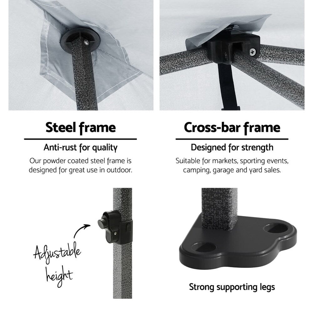 With a wide roof coverage of 300cm by 600cm, the exceptional 6kg cover is made of durable PU coating Oxford fabric thats both UV and water resistant. No more worries about being too hot or too wet, you can get your event going with total peace of mind from the elements. Giving you ample dry cover from rain and adequate protection from UV radiation.