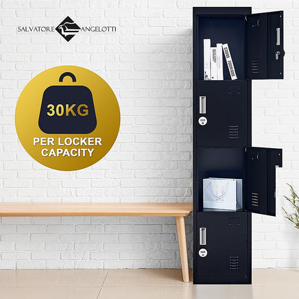 The unit measures 1800 x 380 x 450mm, and several units can be seamlessly placed side-by-side. Made with durable steel, the unit features six stacked square lockers with vents for air circulation and spaces for name tags or plates. The unit can hold up to a maximum weight capacity of 80kg in total.