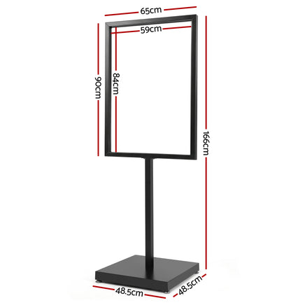 Get your message seen with our Pedestal Sign Holder, the fair dinkum way to display your specials and promotions. Built tough for Aussie conditions, this stand features a super easy slide-in system for changing posters in a flash—no worries about complicated clips or tools. Its double-sided design means maximum visibility, perfect for catching eyes in busy shops, lobbies, or markets. With a heavy-duty, sturdy base and non-slip rubber feet, this holder stays put where you plant it, giving you reliable, wobble-free signage that works hard so you don't have to. It's the simple, professional solution for high-impact indoor advertising.
