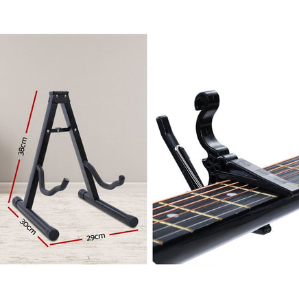 Accessories: 2 picks, 6 strings, shoulder strap, guitar stand, capo and carry bag