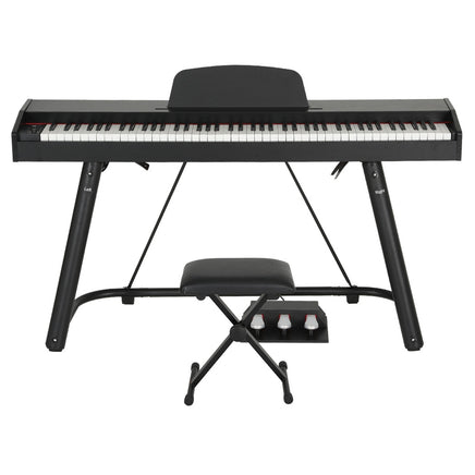 Do you love music? Do you want to spend your day playing and singing to your favourite songs? Let the Alpha 88-key Electric Keyboard help to realize your musical aspirations. With 88 semi-weight keys, the Alpha Portable Keyboard enables you to discover a whole new world of music with some of these exceptional built-in features: 600 rhythms, 800 timbres, a metronome, 80 demo songs, various effects controls, and much more. A clear LED display makes it easy to observe your keyboard functions. With various inputs for microphone and headphones as well as speaker outputs, the Alpha Keyboard allows you to record and playback your music for all to hear. Your package also includes an adjustable keyboard stand, a sheet music holder and a sustain pedal. Cultivate your love of music with an Electric Keyboard from Alpha.