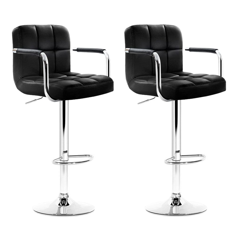 2x Bar Stools Leather Gas Lift w/Armrest Black