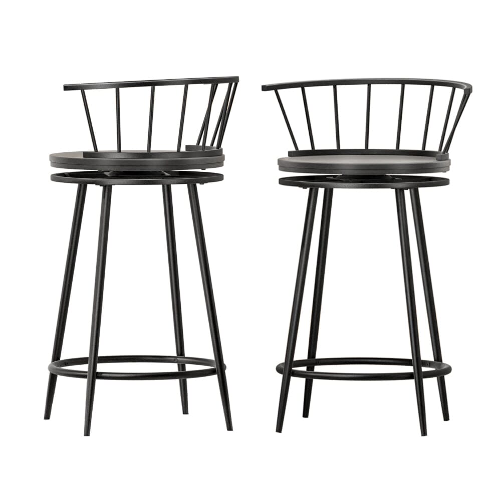 Style your bar setting with the Vanny Bar Stool set from Artiss. Crafted with a reinforced, powder-coated steel frame and a premium wood seat, the bar stools have a strong 120kg weight capacity and heavy-duty fixings that are built to last. The economically curved backrest and smooth finished edges give the stools a contemporary feel that will suit most modern homes. The swivel seat has 360-degree rotation so your guests can face any direction with ease. A built-in footrest provides comfort for tired feet, while the anti-slip pads keep the stools firmly in place. Easy to clean and even easier to maintain, you�ll love the style and substance of the Vanny Bar Stool Set from Artiss.