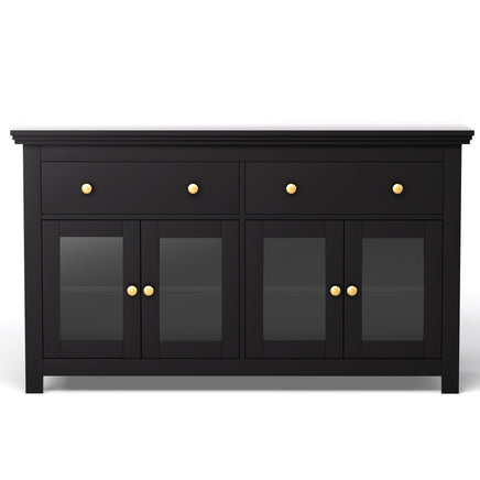 The Artiss 130cm Length Storage Sideboard is the perfect combination of style and practicality. With a spacious stepped edge tabletop, it provides a stunning platform for decor or daily use. The sideboard offers versatile storage zones, including 2 smooth drawers, 2 cabinets, and clear tempered glass doors for elegant display. Height-adjustable shelves allow you to customise the interior space to fit your needs, while the sturdy particle board frame and exquisite metal knobs ensure long-lasting durability. An anti-tip kit is included for added safety, making it the ideal choice for family homes. Easy to clean and simple to assemble, this chic sideboard will elevate any space. Transform your space—order yours today!