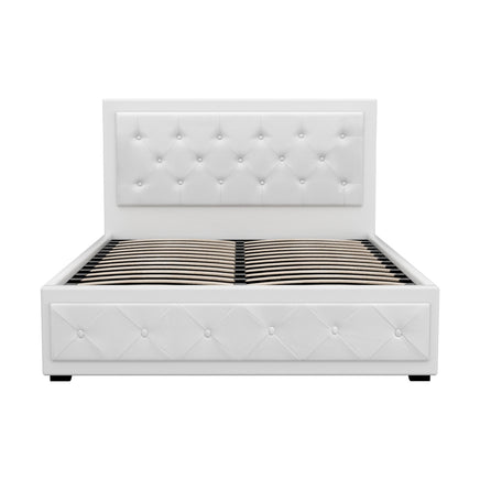 From the outside, our contemporary Artiss Tiyo Gas Lift Bed Frame looks absolutely plush. The premium PVC leather tufted headboard and sides all exudes fine craftsmanship. But there is more to this luxurious bed frame than meets the eye. Lift up the frame and you will find acres of storage space under the wooden arched slat base. The gas lift system and hand strap enable you to effortlessly lift the bed to store all your seasonal beddings and linen such as extra quilts, pillows and comforters and more. The wooden arched slat base is also designed to flex appropriately so that it can better distribute the weight exerted on it. Overall, the bed frame is well-built with reinforced steel bars within its sturdy steel frame. Heavy-duty metal connectors keep the frame sturdy with additional central support from an adjustable centre support beam. Enjoy your wonderful sleep in more ways than one with our innovative Tiyo Gas Lift Bed Frame.