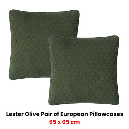 A simple yet classic design. Pair of Lester Olive Velvet European Pillowcases by Bianca is the perfect shade of olive. Featuring a diamond quilted pattern on a lovely soft velvet fabric.