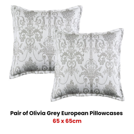 The Pair of Olivia Grey European Pillowcases by Bianca features a subtle ornate rose design in fresh white that contrasts beautifully on a grey background. The european pillowcases feature a coordinate colourway in reverse colours.