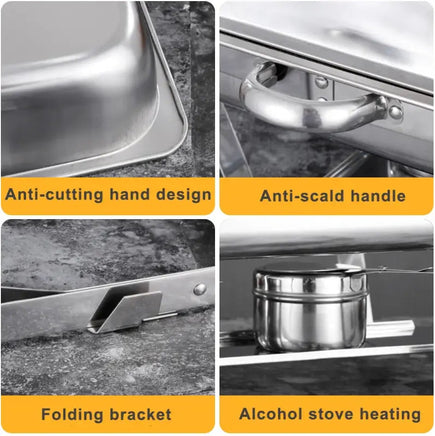 Designed for convenience, the buffet stove includes two fuel burners for even heat distribution, ensuring your food stays warm for hours. Perfect for hotels, catering services, parties, and family gatherings.