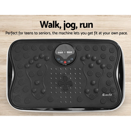 When you do not have the time for the gym, our Everfit Vibration Machine is all you need to keep yourself in shape. A 15-minute workout on the vibration machine is equivalent to double the time spent on swimming, yoga and sit-ups, and almost 60 minutes of jogging and riding. A very efficient use of precious time to get your body shaped and toned quickly. Operating the machine is super easy with the digital and remote controls. Just set the time, speed and intensity and you are good to go. The stepper even has a point-massage surface so that you can enjoy reflexology while working out. Our vibration machine features a powerful dual-belt motor that is designed to be durable, stable and safe. With a weight capacity of up to 120kg, it is the perfect fitness trainer for people of all ages. Plus, the machine comes with a set of resistance bands for those keen on more intense workouts. Getting fit and losing weight can be a feel-good experience. And it is even better with our vibration machine, with a whole lot of shaking fun going on.