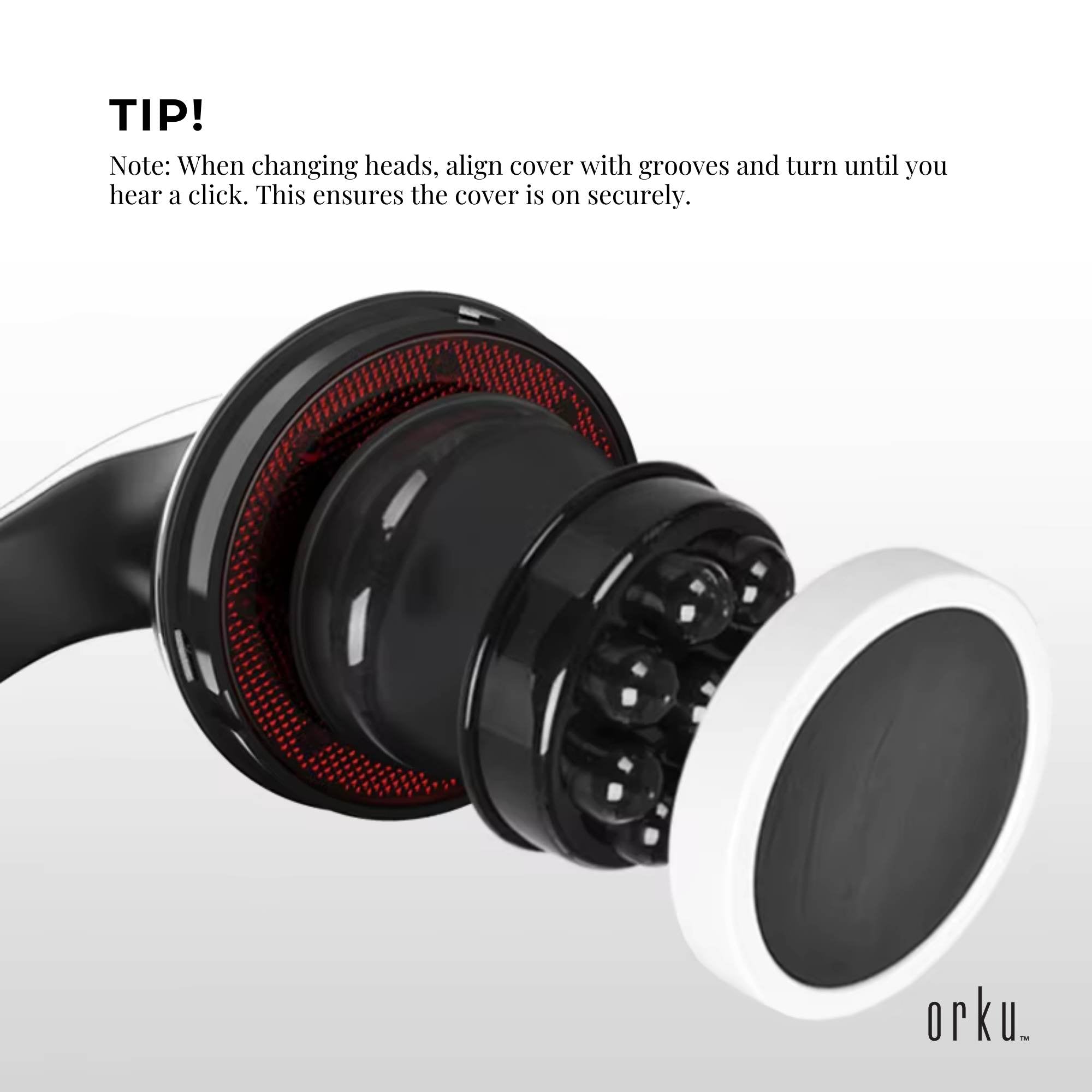 Note: When changing heads, align cover with grooves and turn until you hear a click. This ensures the cover is on securely.