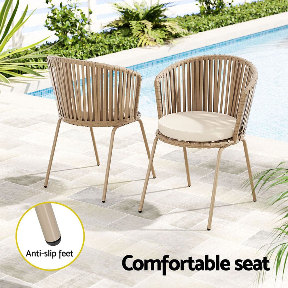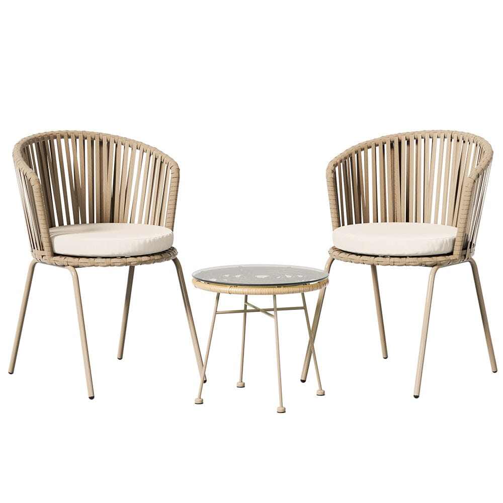 3PC Outdoor Bistro Set Patio Furniture Rope Setting Chairs Table Beige Kings Warehouse SALE