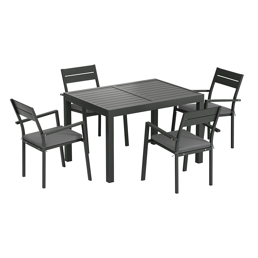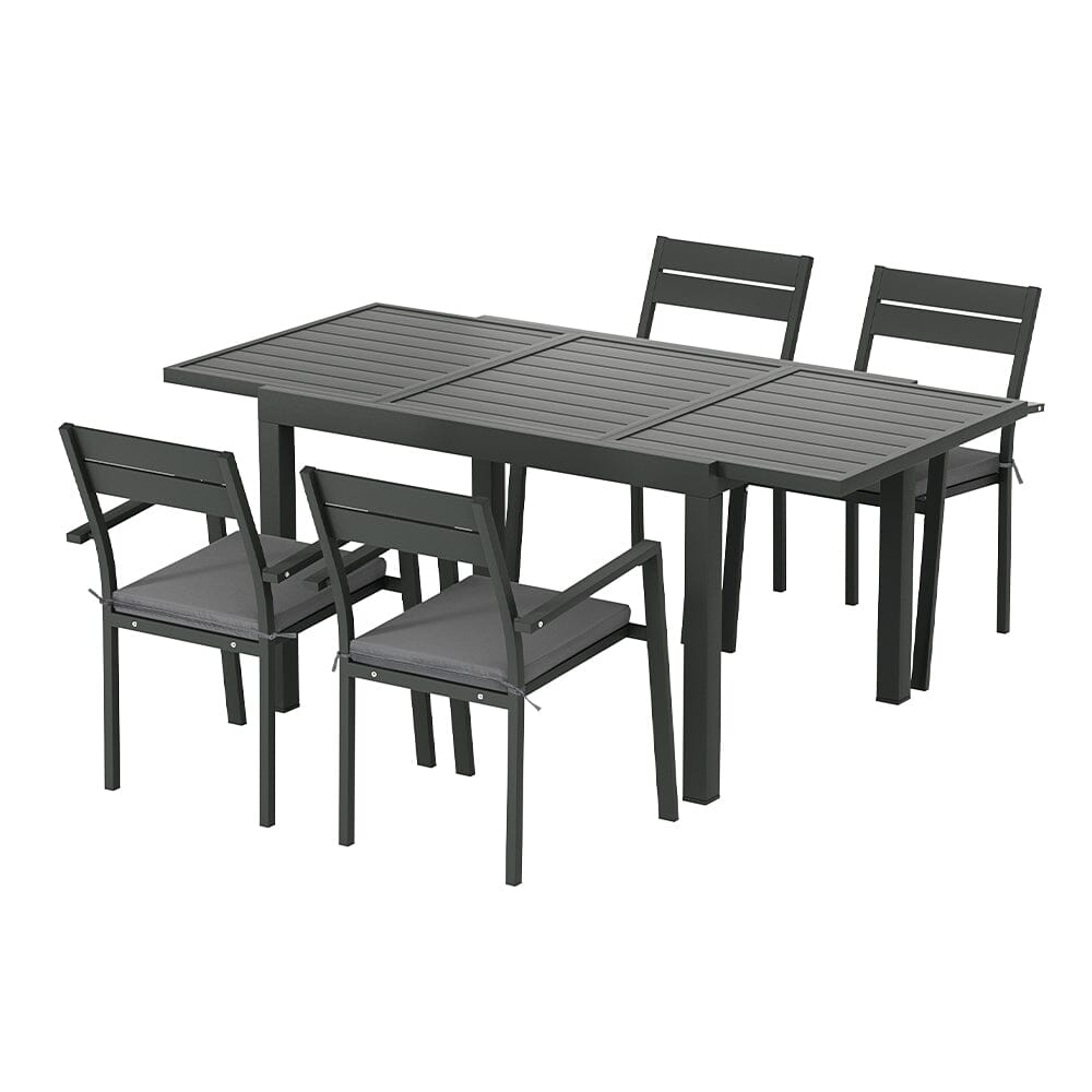 With summer fast approaching, you can once again join the sunshine with the Gardeon 5-piece Outdoor Dining Set. Made from a powder-coated metal frame, the set is designed for outdoor or indoor use in a wide range of weather conditions. The table and chairs are designed to comfortably seat four people across four single chairs, or the table can be extended to fit up to six (extra chairs not included). The stable structure features fixed safety screws, giving each chair a 150kg weight capacity and a table weight capacity of 50kg. The seats are classically designed and completely comfortable with an inclined backrest, comfortable handrails, and 5cm thick foam cushions. The cushions feature removable and washable covers for easy cleaning. The table and chairs feature a slatted surface for easy drainage during wet weather. With easy and hassle-free assembly, the Gardeon 5-piece Outdoor Dining Set is the perfect addition to any backyard, patio or even sitting room.