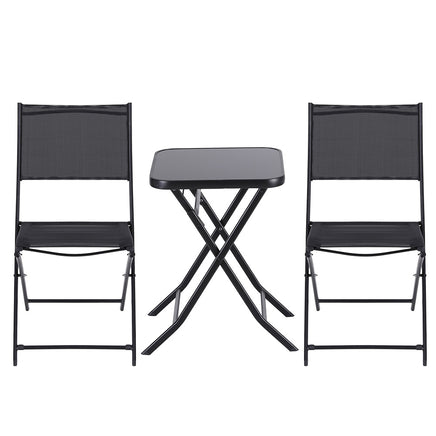 Gardeon Outdoor Bistro Set Folding Table and Chairs Patio Furniture Garden Steel Black