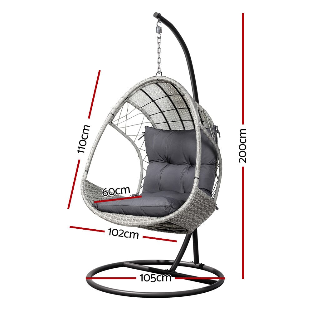 Soak up the sun as you swing lazily in the Gardeon Hanging Pod Chair. Perfect for indoors and outdoors, this chair features an intricate pattern of resin wicker that makes a great addition to your boho-inspired space. With a durable anti-rust frame and strong steel chain and hook, you can rest assured the chair will support you through all your relaxation activities. The comfortable egg-shaped design with plush padded cushions will help you relax and unwind. The cushions are removable for easy cleaning and to suit the seasons.