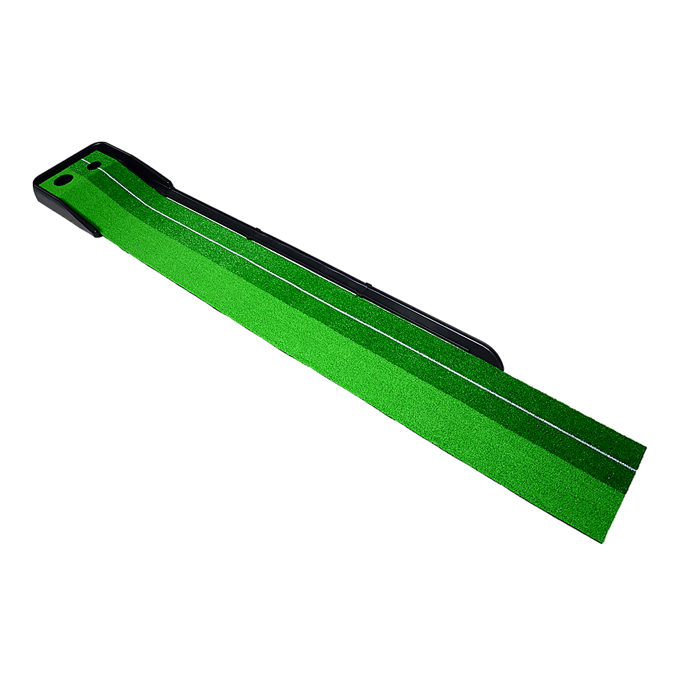 No worries if you miss a putt. The gravity-powered ball return sends your ball rolling back to you. A white guide line helps you focus on adjusting your swing so you won't miss the next time. Crafted from high-quality plastic and all-weather artificial turf, it can hold up under anything Mother Nature can dish out. Use it in your office or even in your living room. Just roll it up and store it in a wardrobe when guests arrive. Take it along when you're on holiday so that you can warm up before you play a round with your mates. It's an ideal client gift for businesses, or the golf aficionados in your life adults or children. Order yours today!
