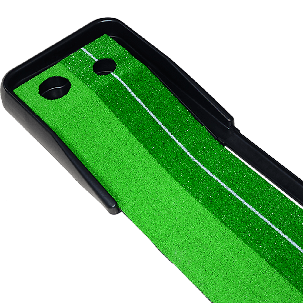 Indoor Practice Putting Green 2.5m Mat Inclined Ball Return Fake Grass 2 Holes