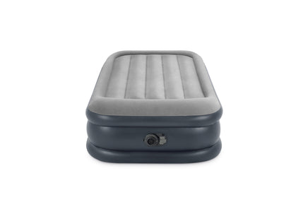 The deluxe version of our Pillow Rest Raised Airbed has reached another�level of luxury. Engineered with Fiber-Tech Technology, this airbed�provides enhanced comfort, stability, and support.The 16�" raised height�provides easy accessibility and a closer feel to traditional mattresses. The�soft, velvety sleeping surface and the built-in pillow provide extra comfort,�while the powerful internal pump allows for easy inflation and deflation. AIRBED WITH FIBER-TECH TECHNOLOGY Carry bag included for easy storage and transport.Details:
