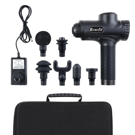 Everfit Massage Gun 30 Speed 6 Heads Vibration Muscle Massager Chargeable Black SALE