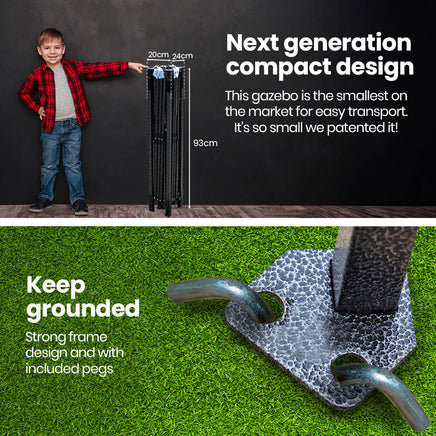 The Red Track 3.6 x 2.2m Gazebo stands out with the smallest folded size on the market—just 93cm long! This ultra-compact 12kg design makes it incredibly easy for one person to carry, transport, and store, offering unmatched convenience compared to bulkier alternatives. Whether you're short on space or always on the move, this gazebo’s design ensures portability without compromise.